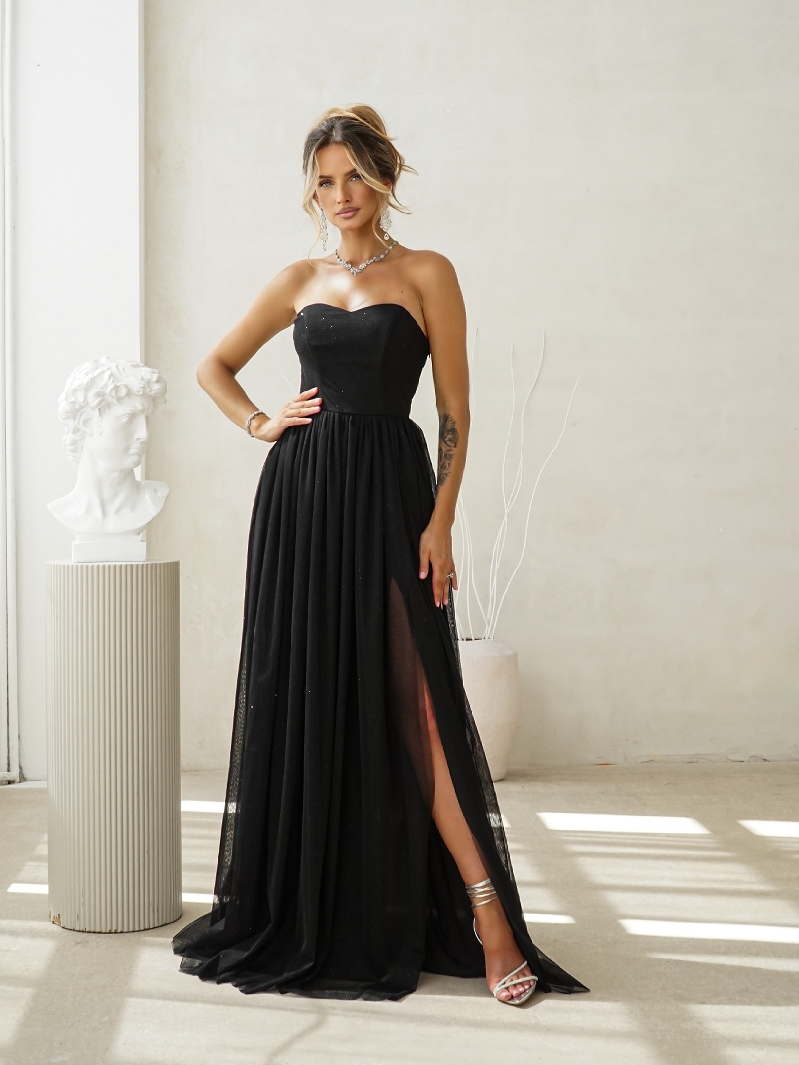 Zjawiskowa długa suknia z gorsetową górą i rozcięciem!