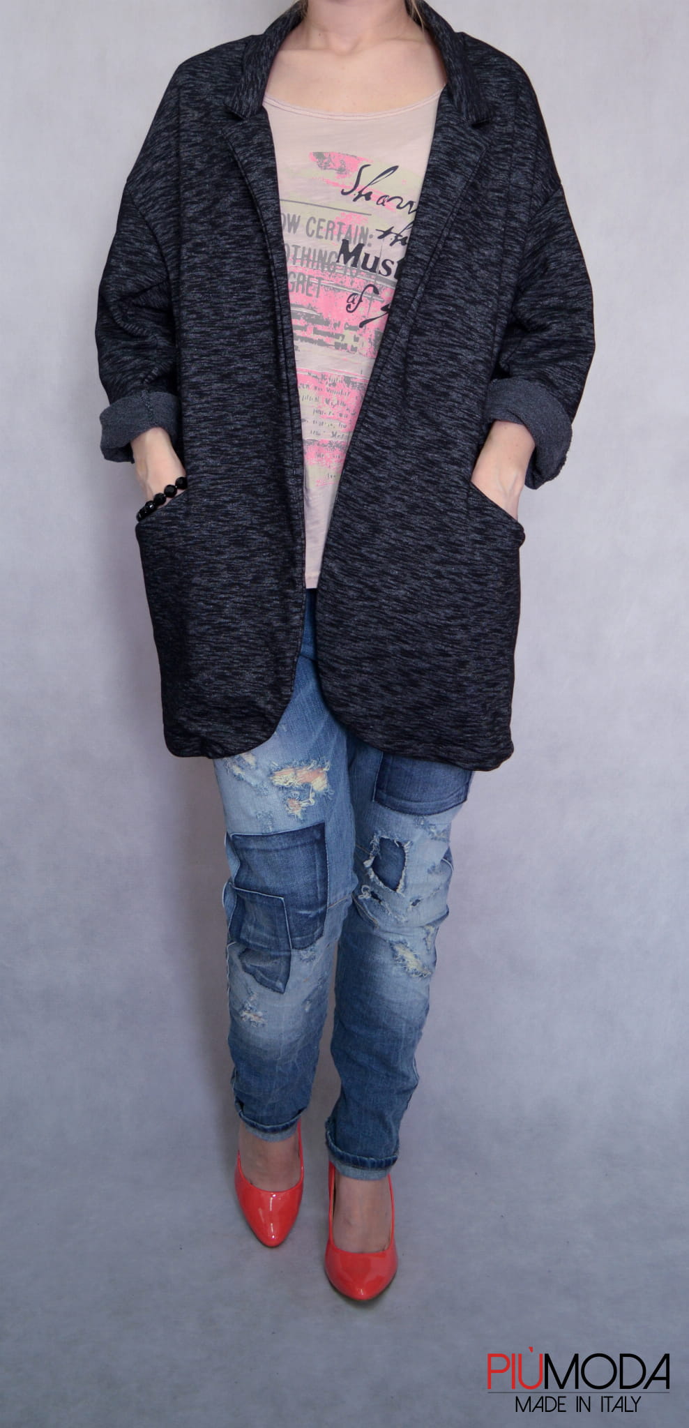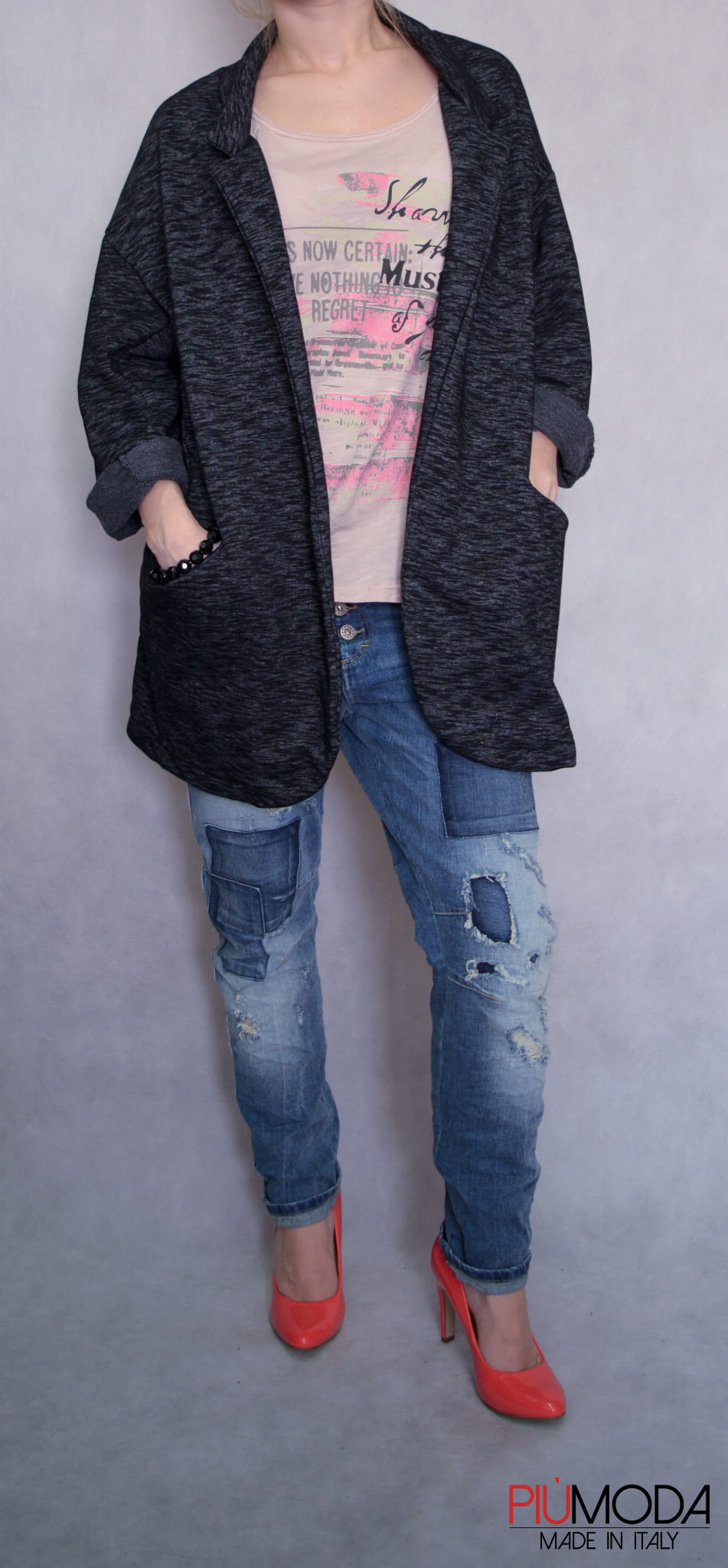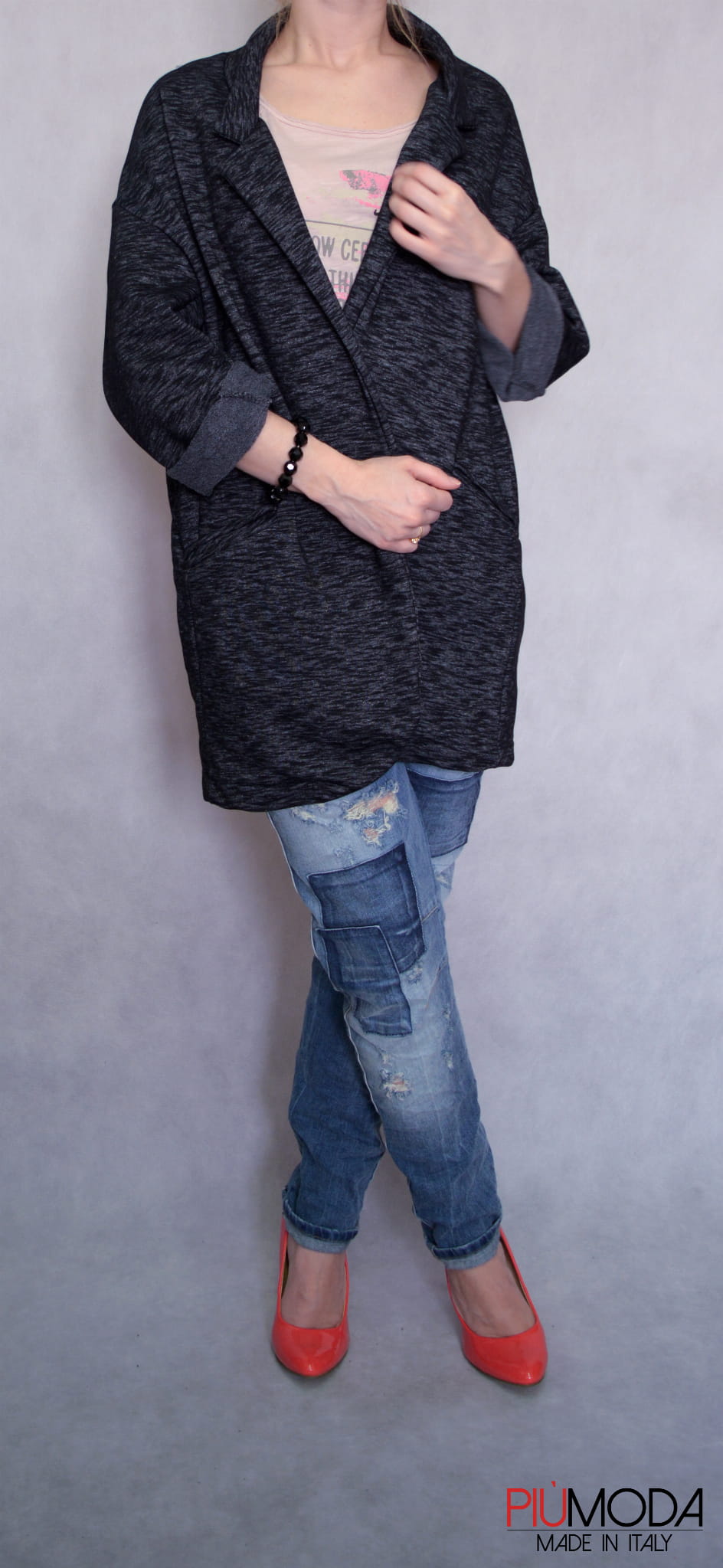 Luźna marynarka z kieszeniami. Model wykonany z przyjemnej w dotyku bawełnianej dzianiny.