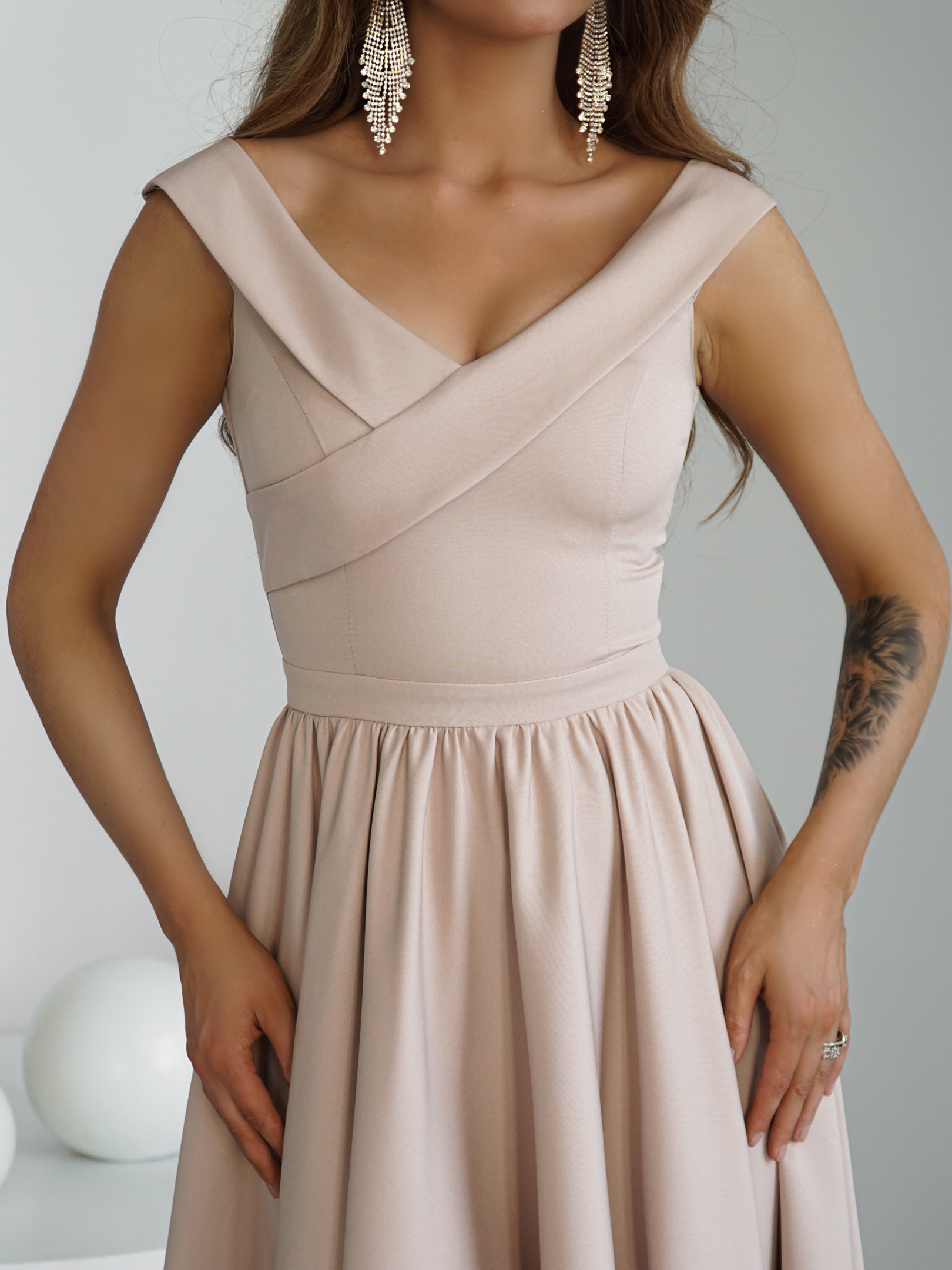 Elegancka sukienka midi z charakterystycznym dekoltem.