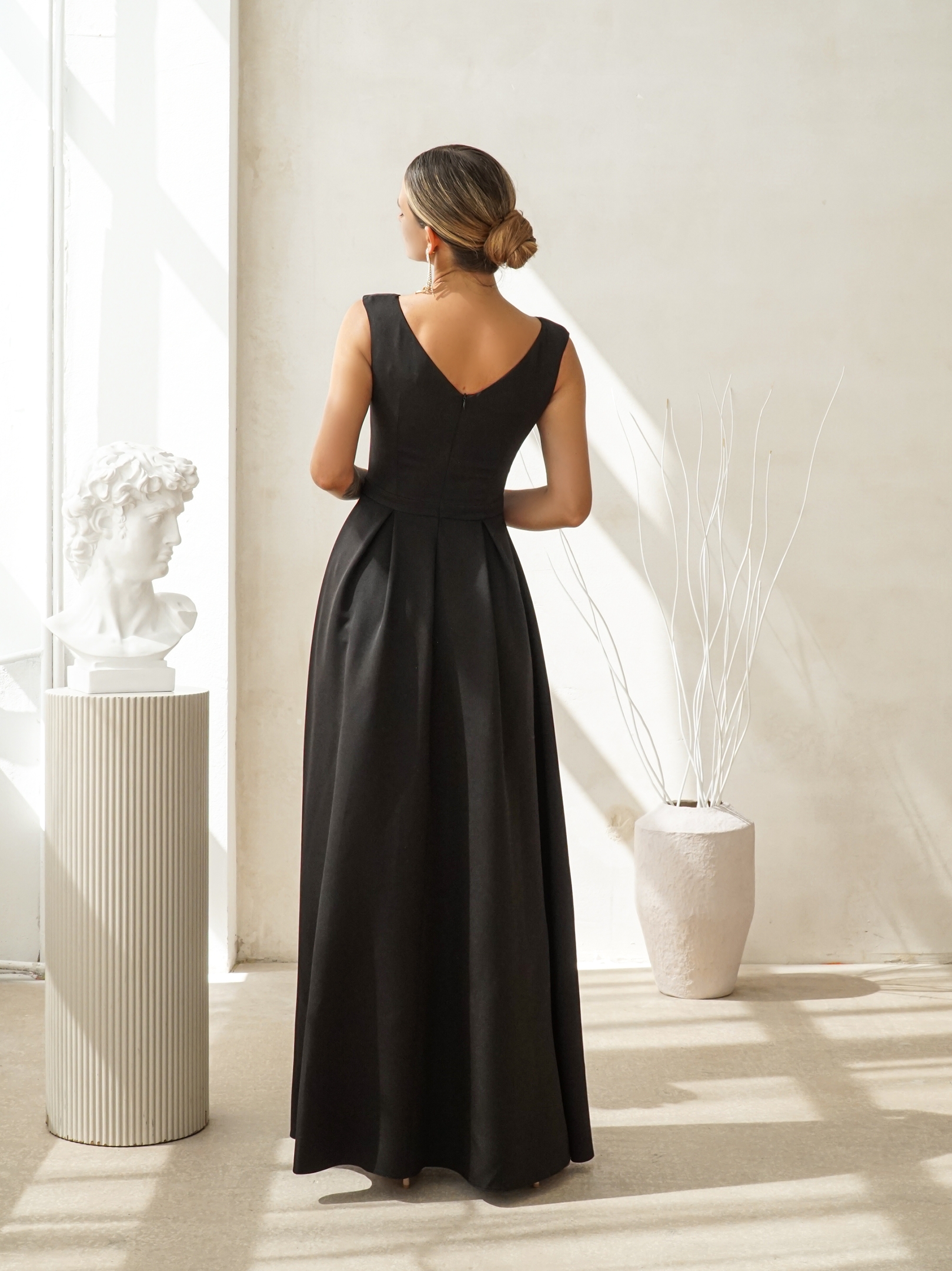 Elegancka sukienka maxi z charakterystycznym dekoltem.