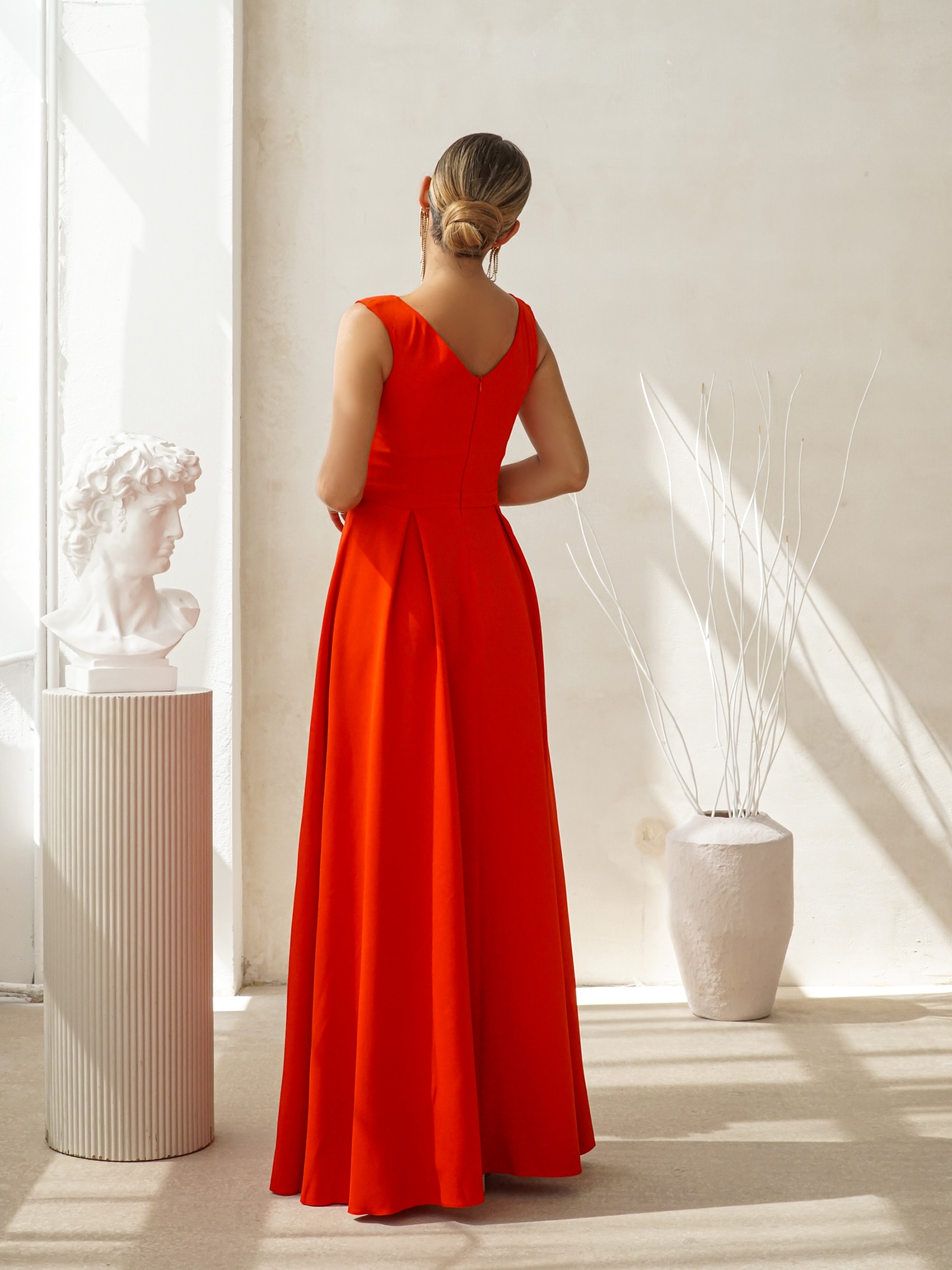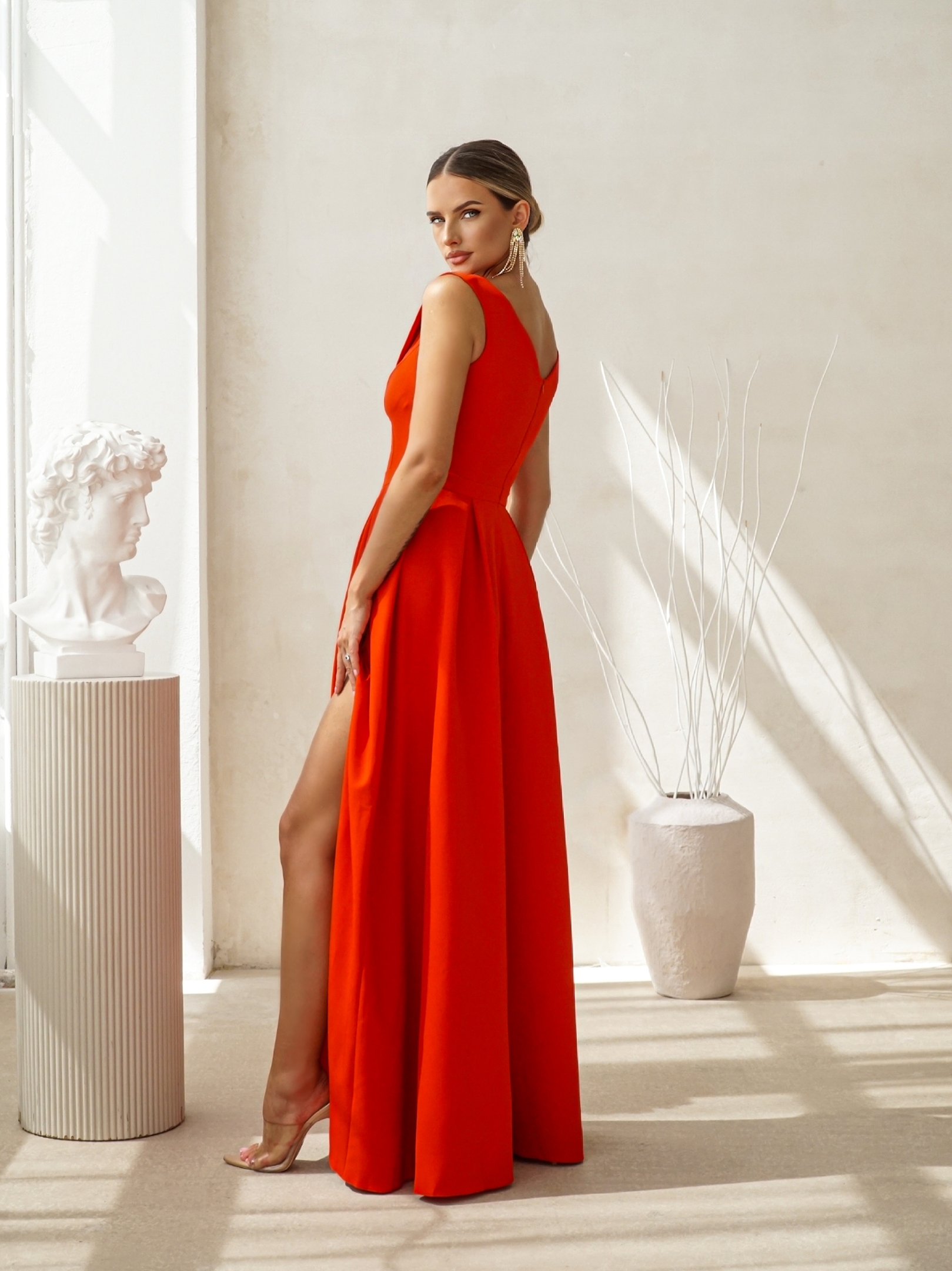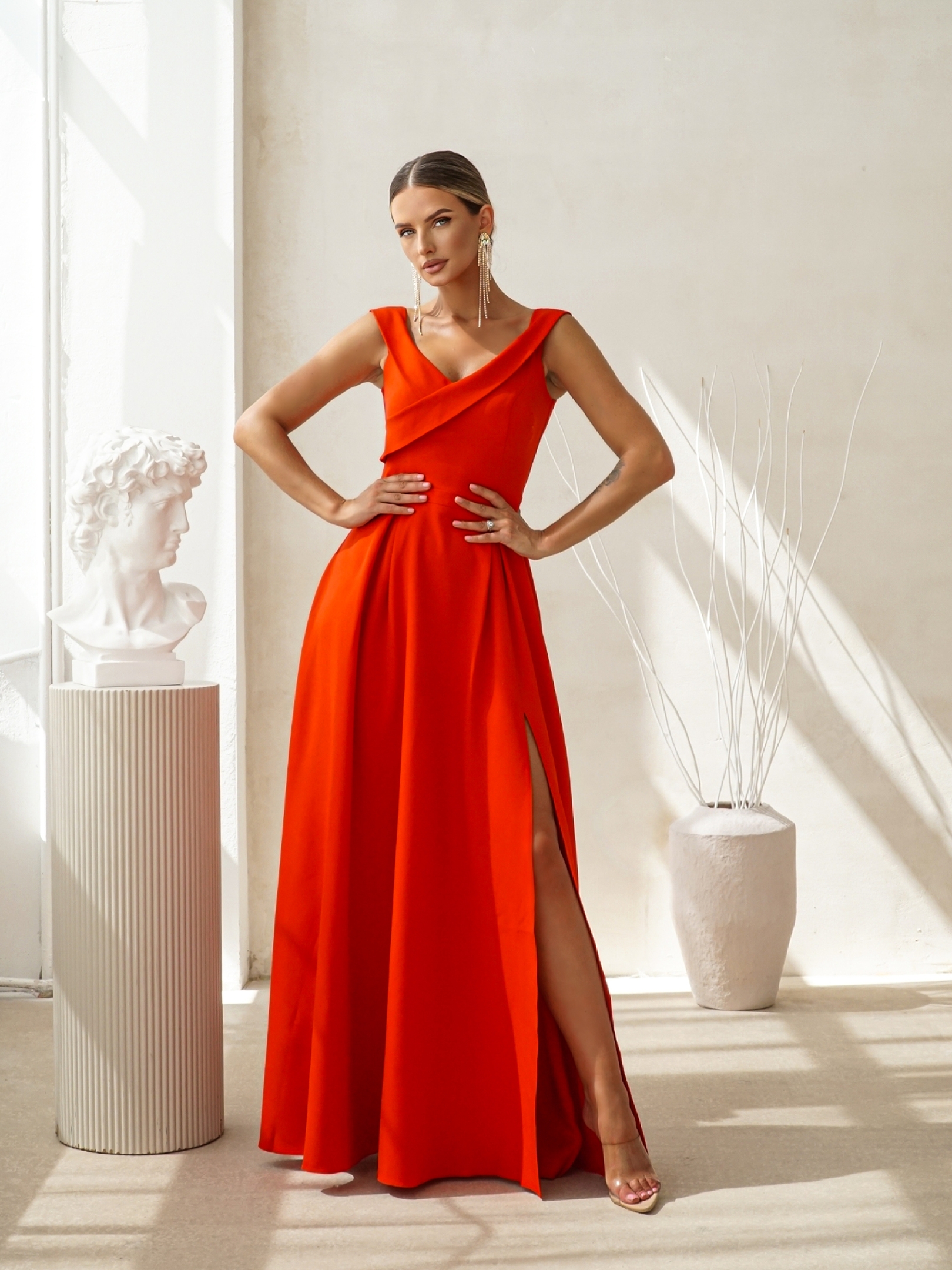 Elegancka sukienka maxi z charakterystycznym dekoltem.