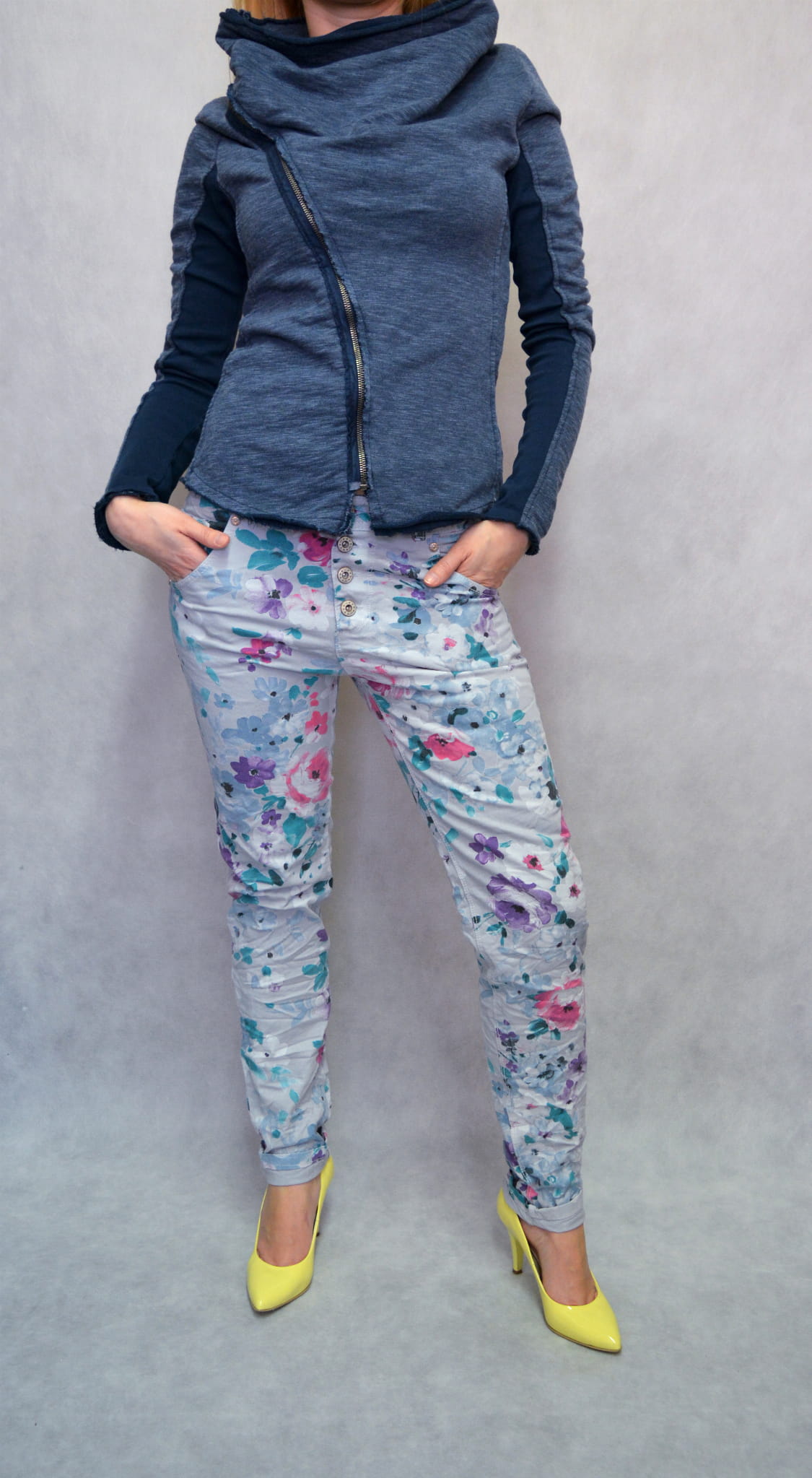 Lekko gniecione na całej długości co nadaje im wyjątkowego charakteru, bardzo wygodne, idealnie układają się na ciele, zapinane na guziki, mają dwie kieszenie po boku.