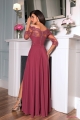 Dopasowana koronkowa góra ozdobiona haftami robi niesamowite wrażenie i nadaje sukni elegancji. Gorset sukienki został usztywniony podwójną warstwą elastycznego materiału, dzięki temu rewelacyjnie trzyma biust i dopasowuje się do niego.