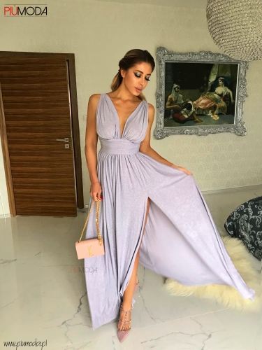 Sukienka wykonana z przyjemnego w dotyku materiału, który dopasowuje się do ciała. Drobinki brokatu na materiale sprawiają, że suknia robi niesamowite wrażenie.