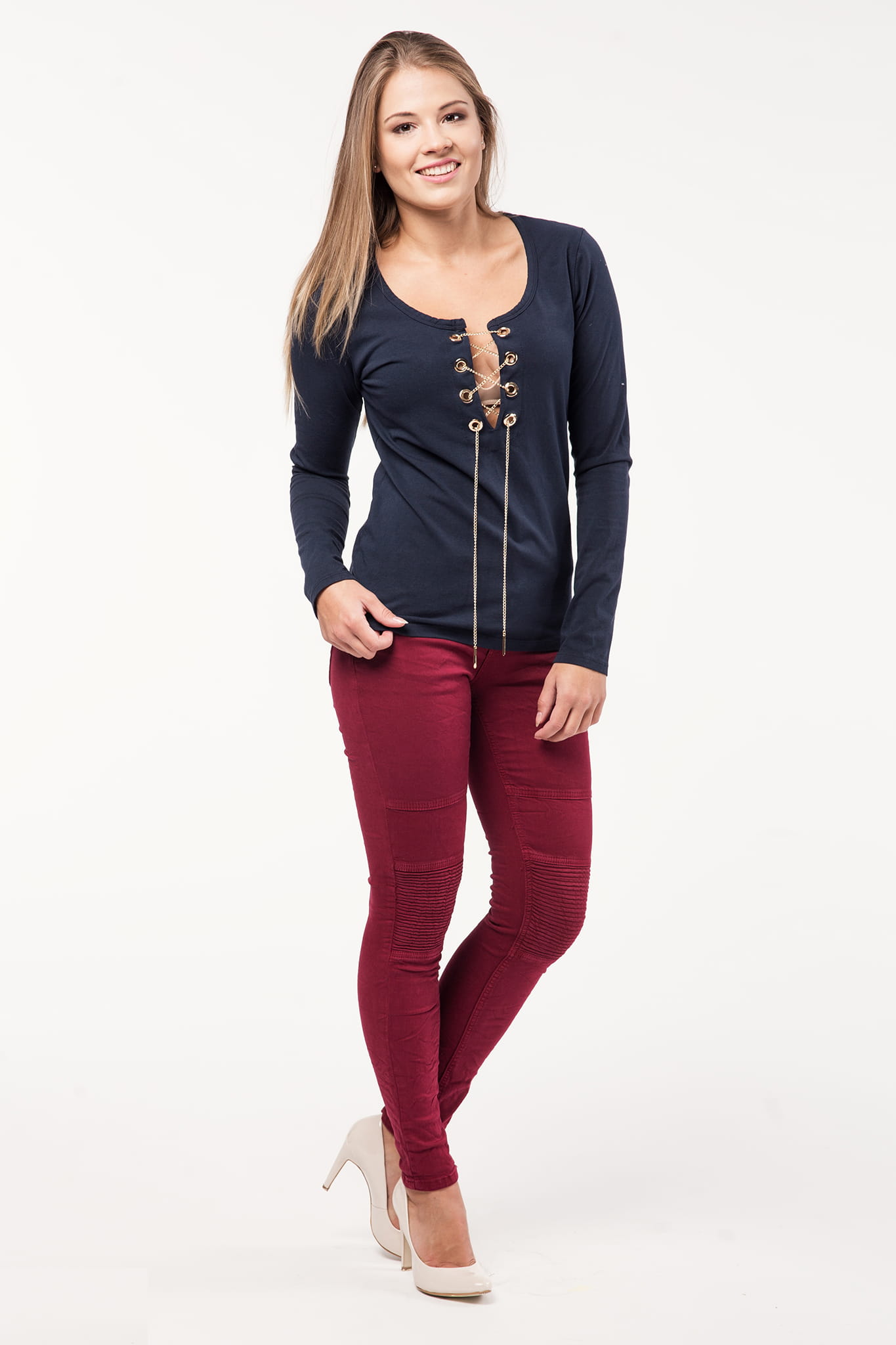 Włoska bluzka, złoty łańcuszek, granat